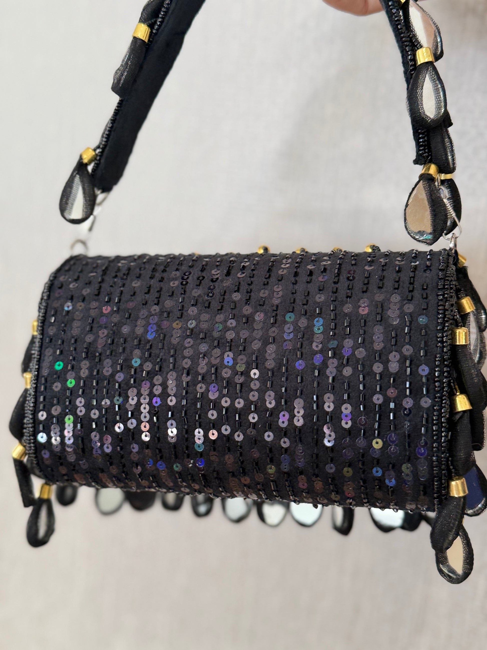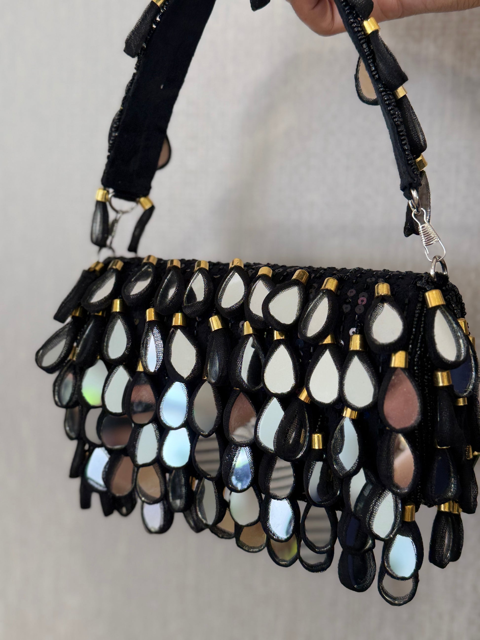 The Aadya Bag is a premium bag, featuring intricate mirror work and a magnetic flap for secure closure. With its graceful design, this bag is the perfect accessory to complement any outfit. Exude elegance and style with the Aadya Bag.