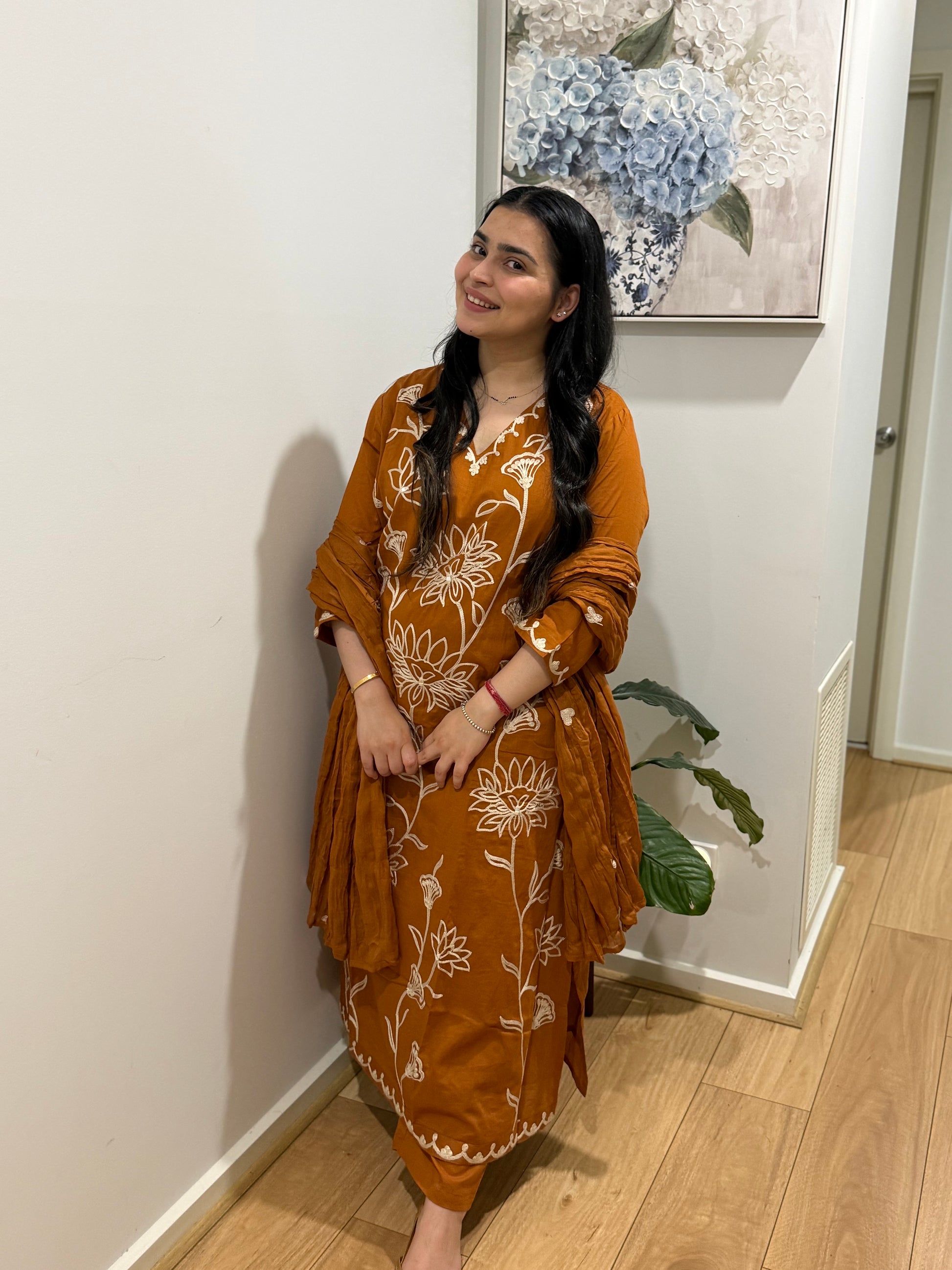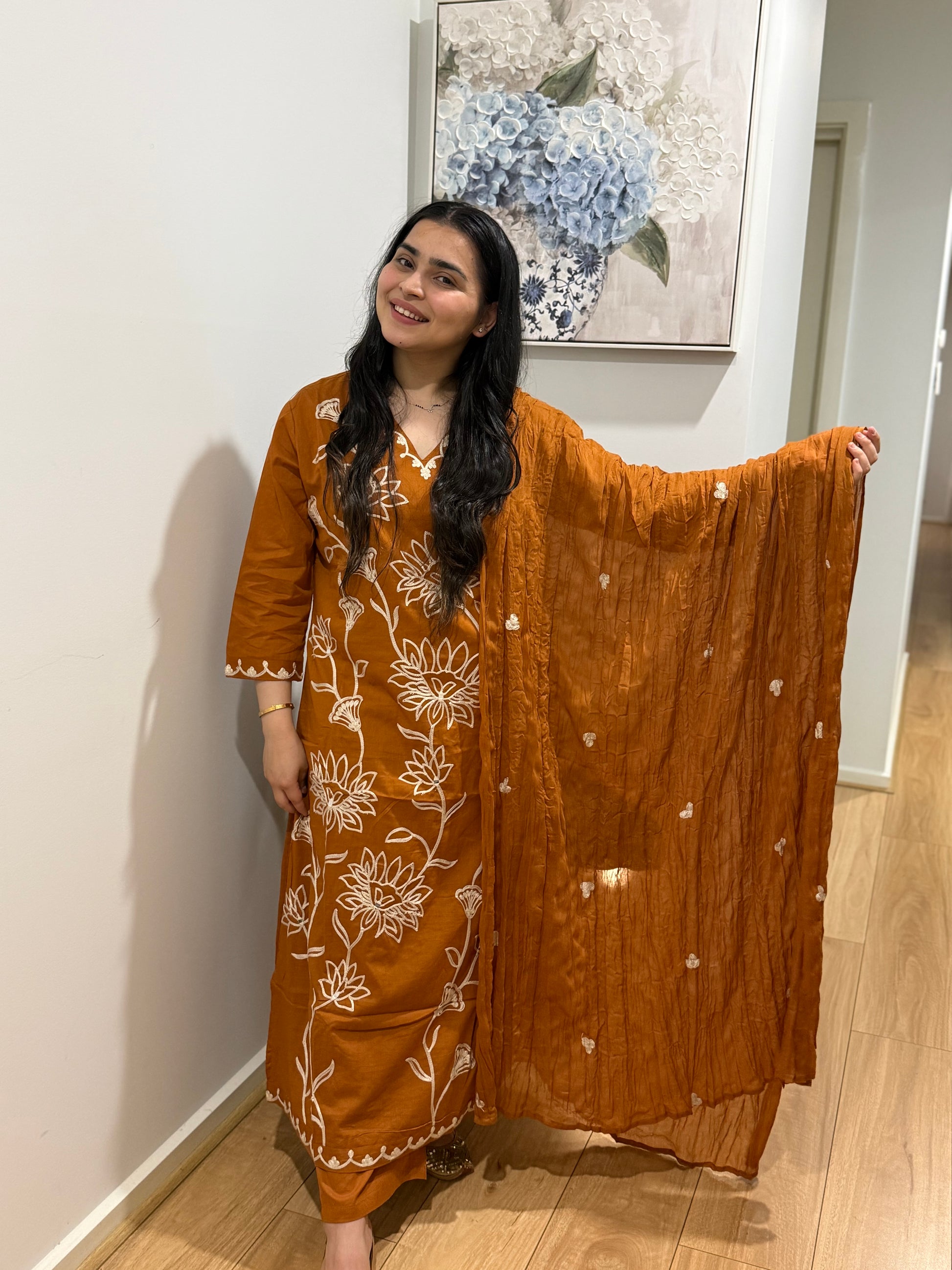 Premium quality mul cotton aline with lining and thread embroidery suit on the suit. Luxury mul cotton dupatta