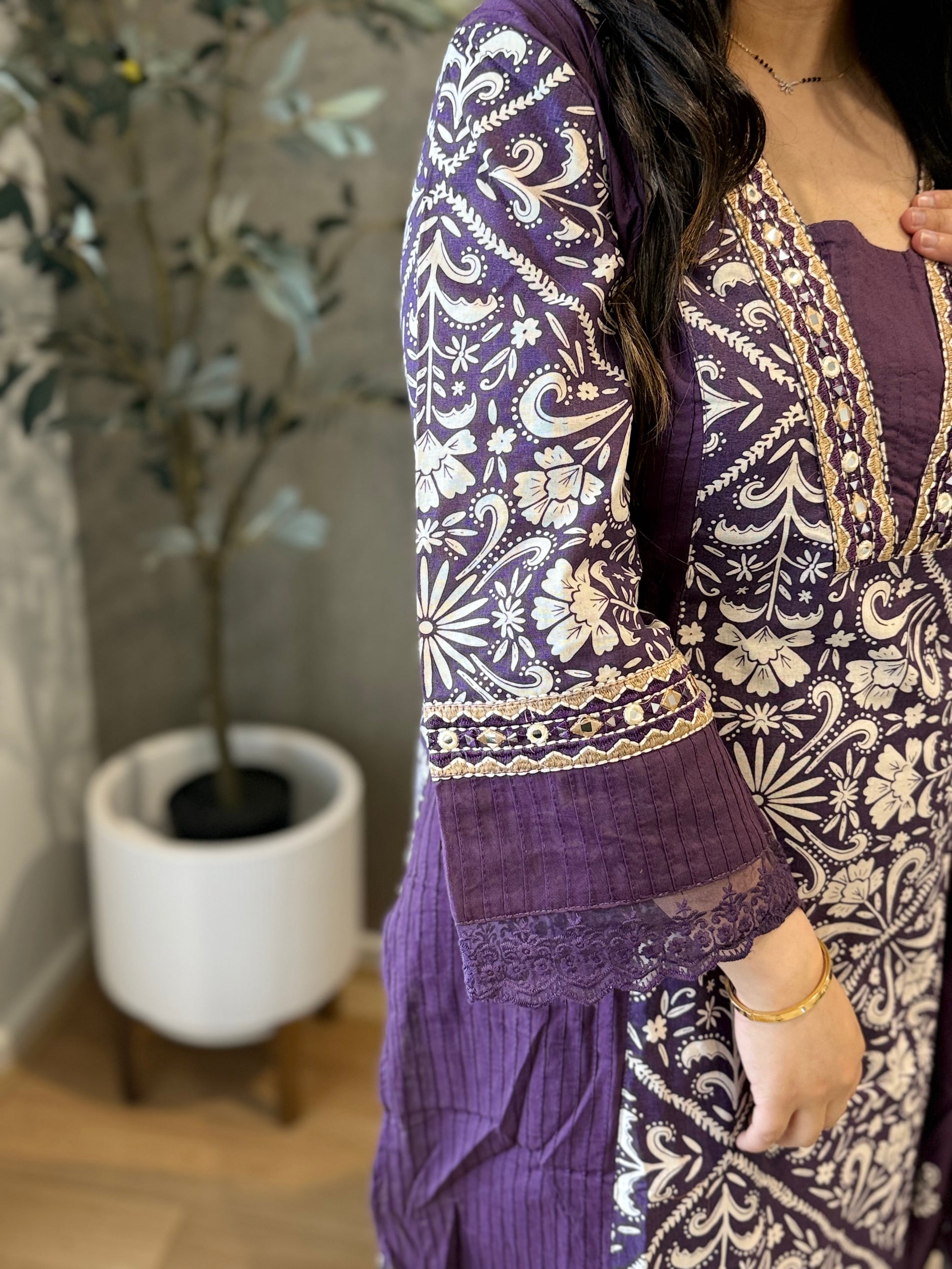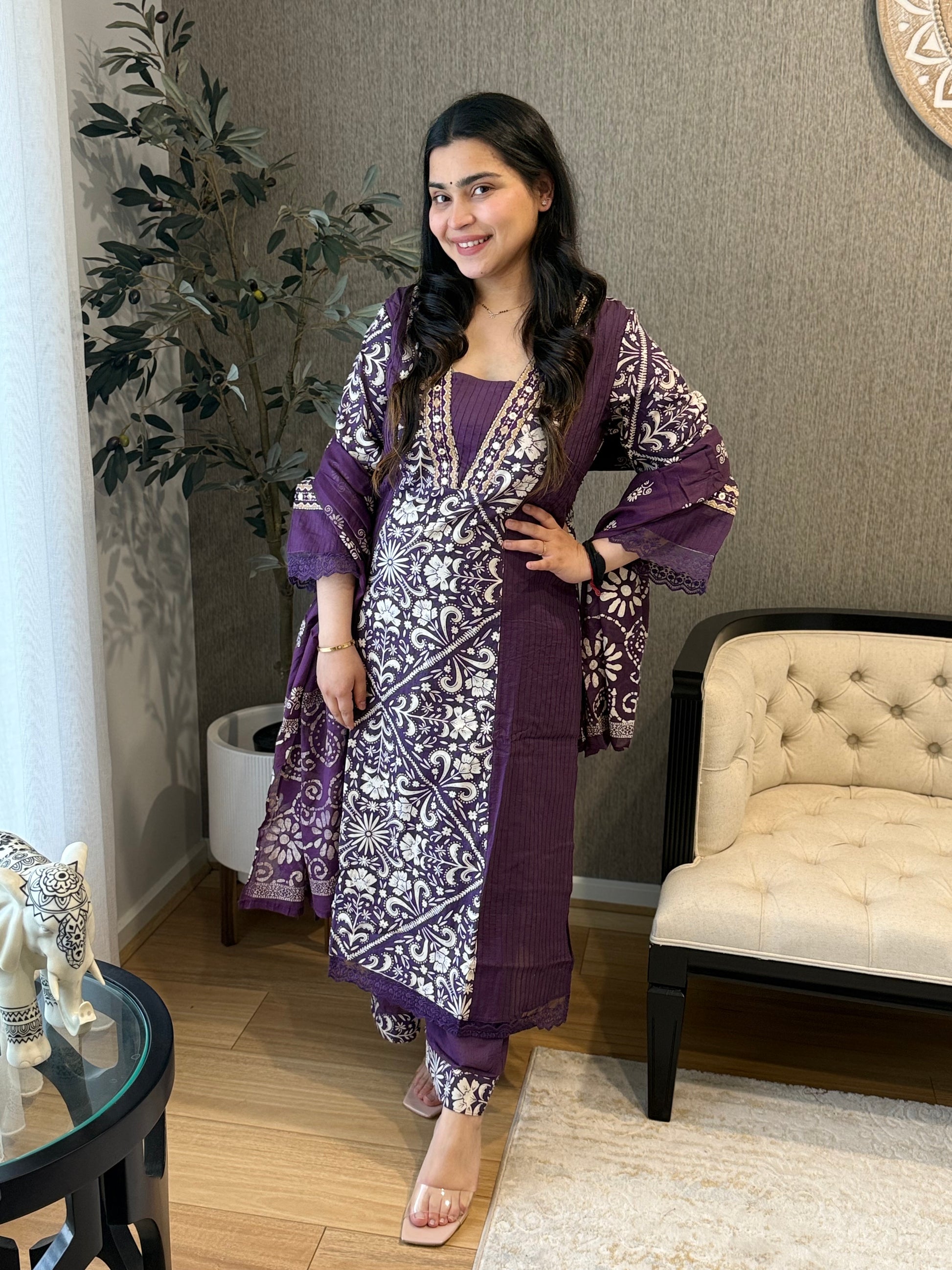 Premium quality ikkat printed cotton suit with dupatta and pants