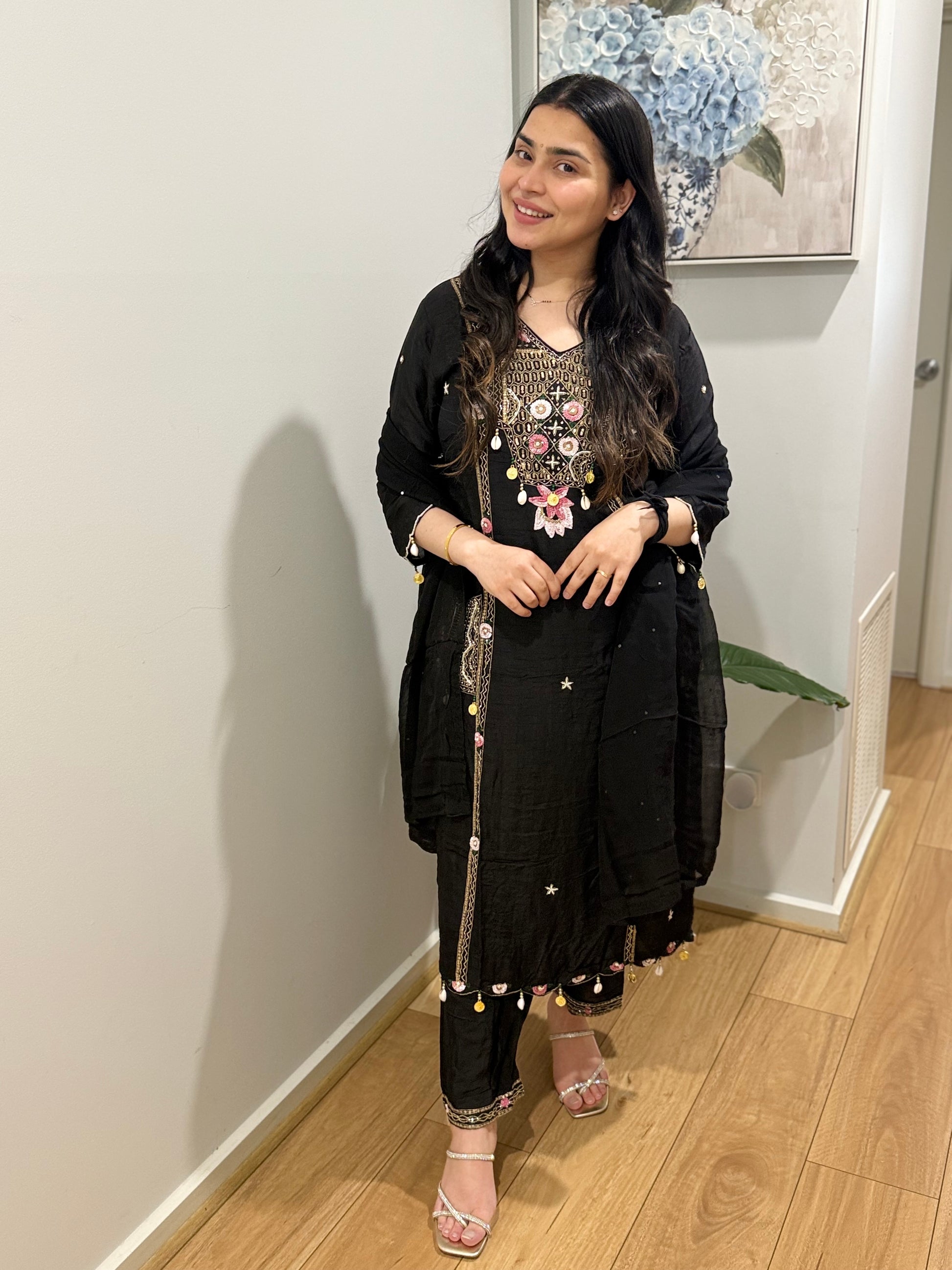 Premium quality silk suit with pants and soft tissue dupatta