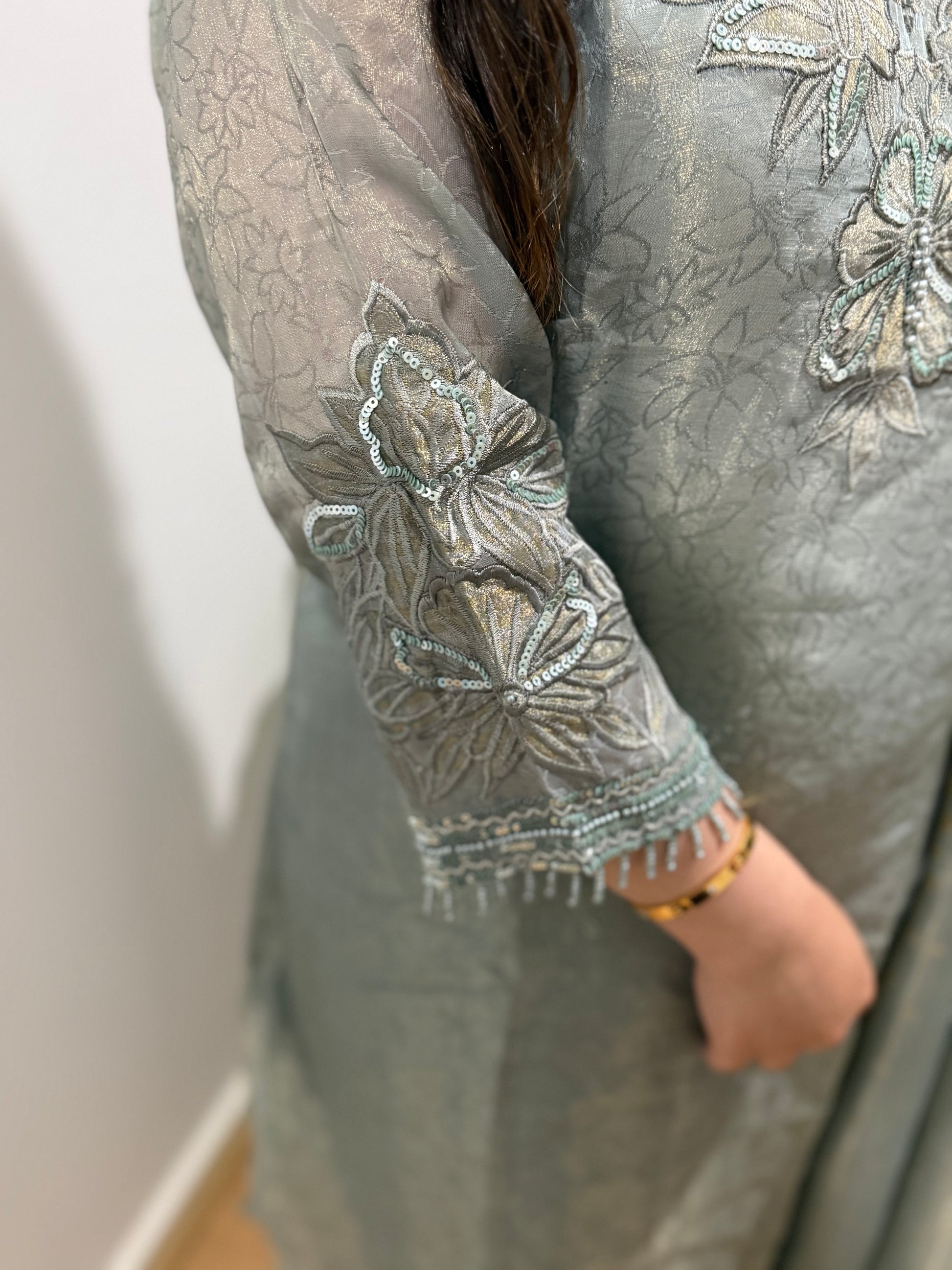 All handwork on the suit with zari and sequin work
