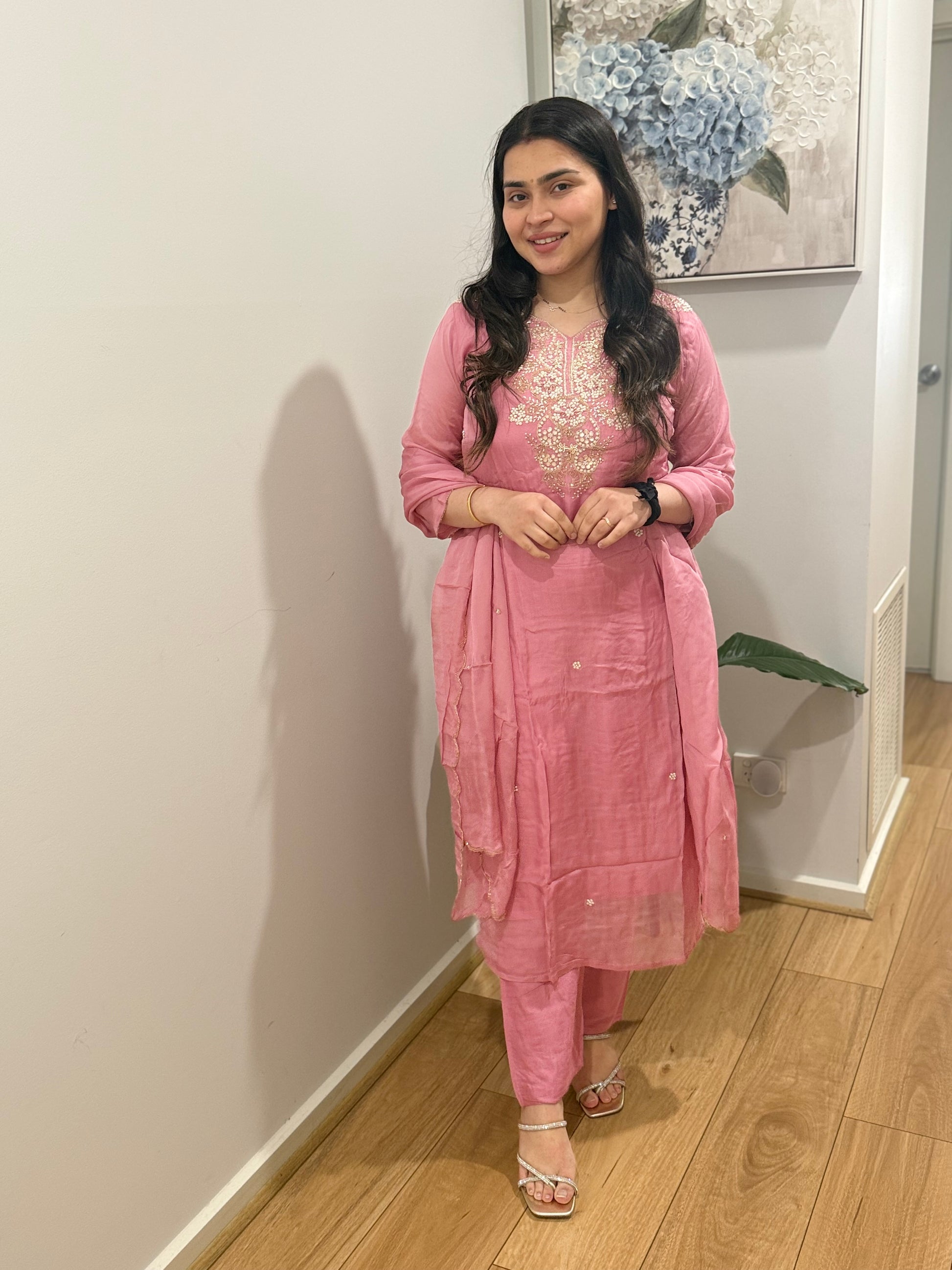 Premium quality soft organza suit with pants and tissue dupatta
