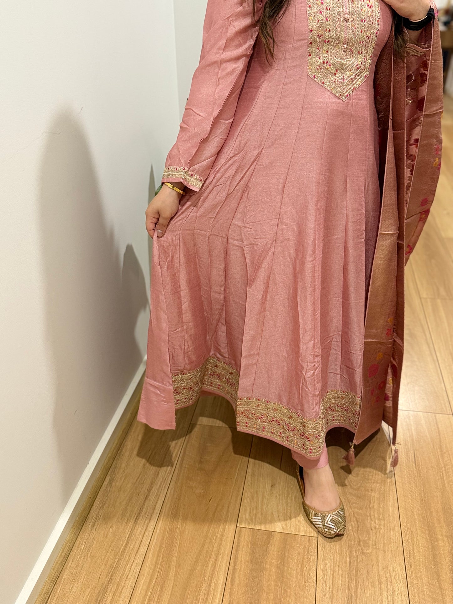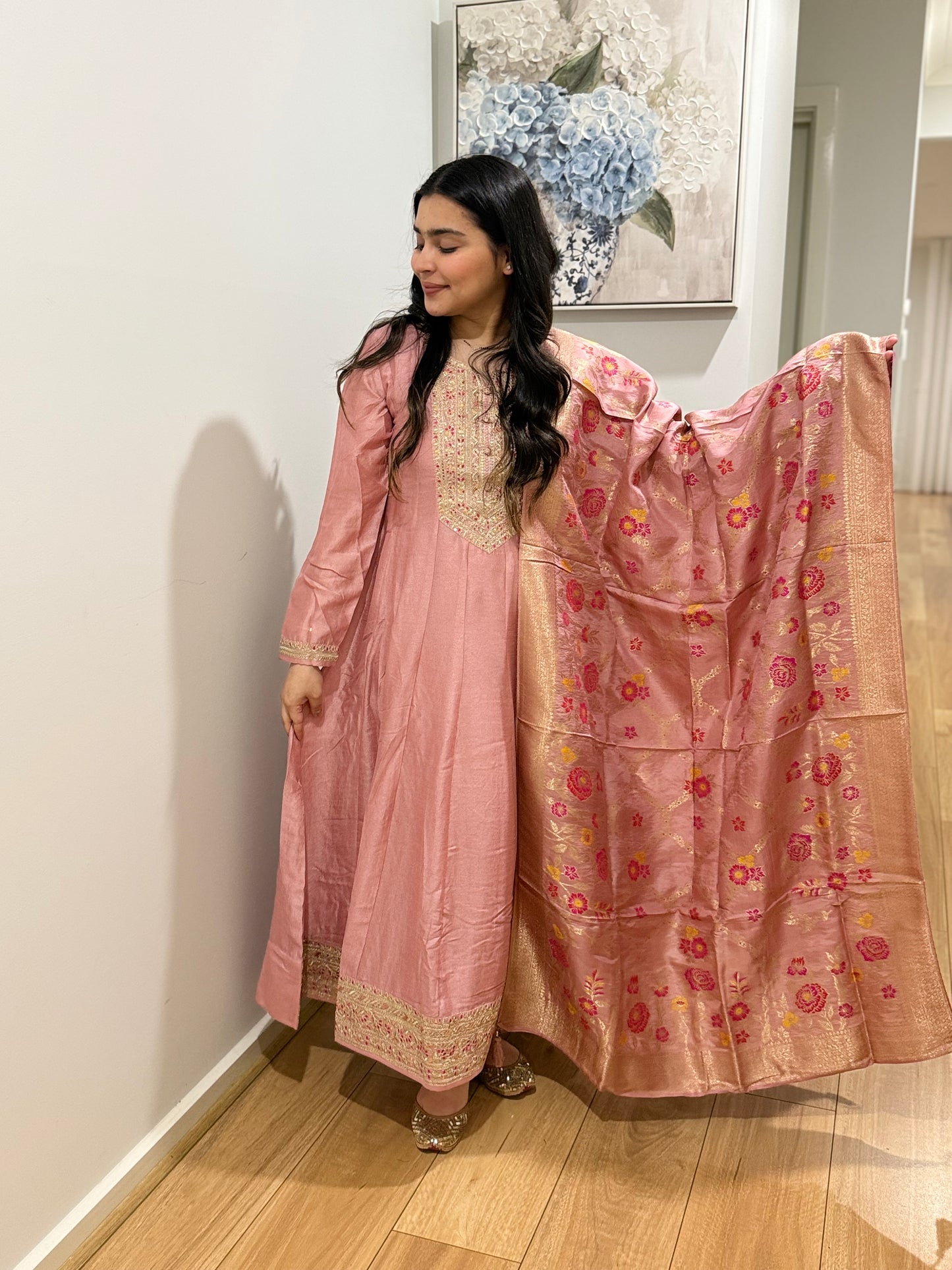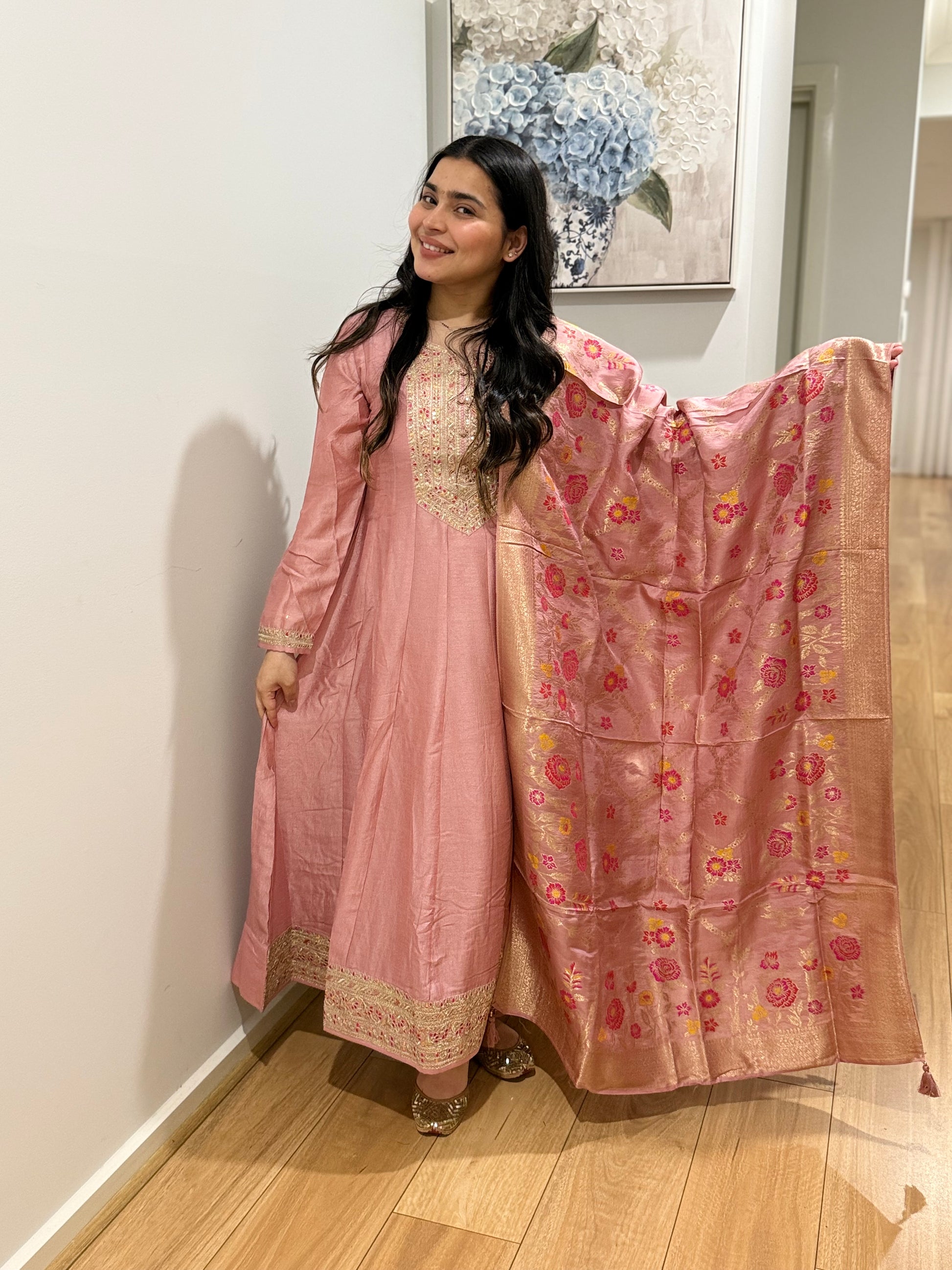 Silk Anarkali with lining, straight pants and banarsi dupatta