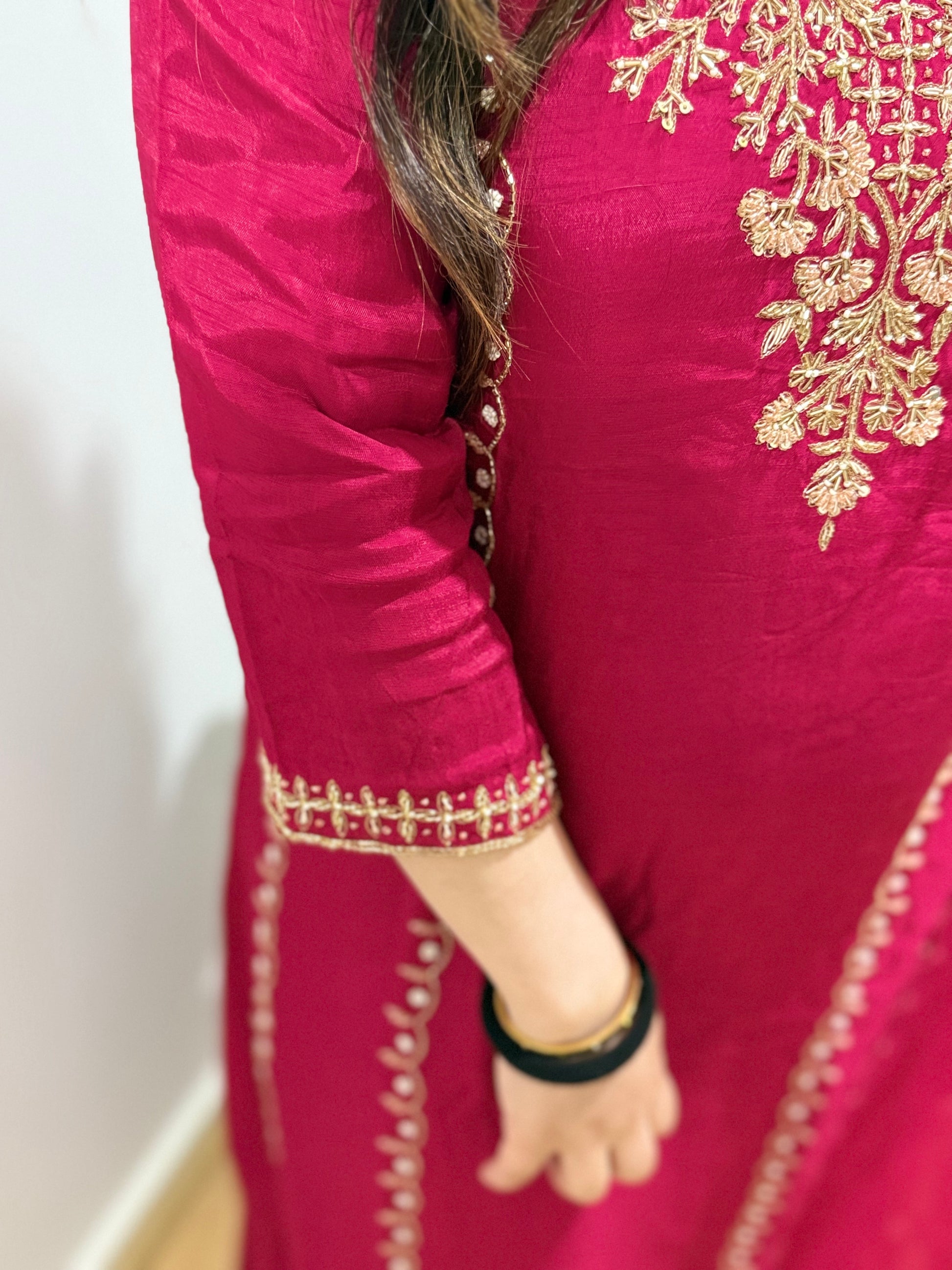 All handwork on the suit with zari and sequin work
