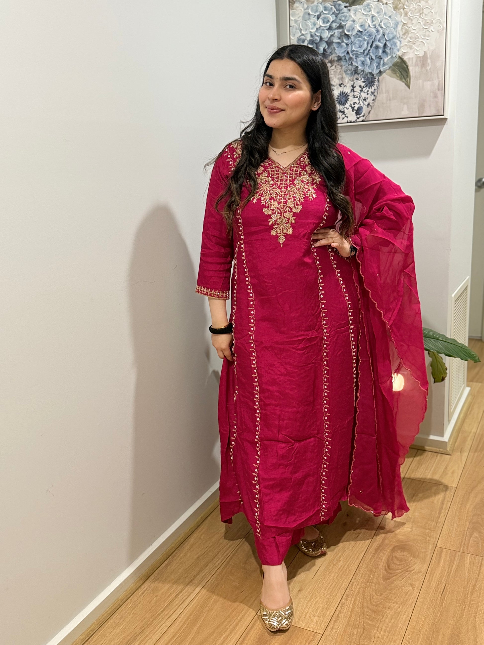 Premium quality silk aline suit with tissue dupatta