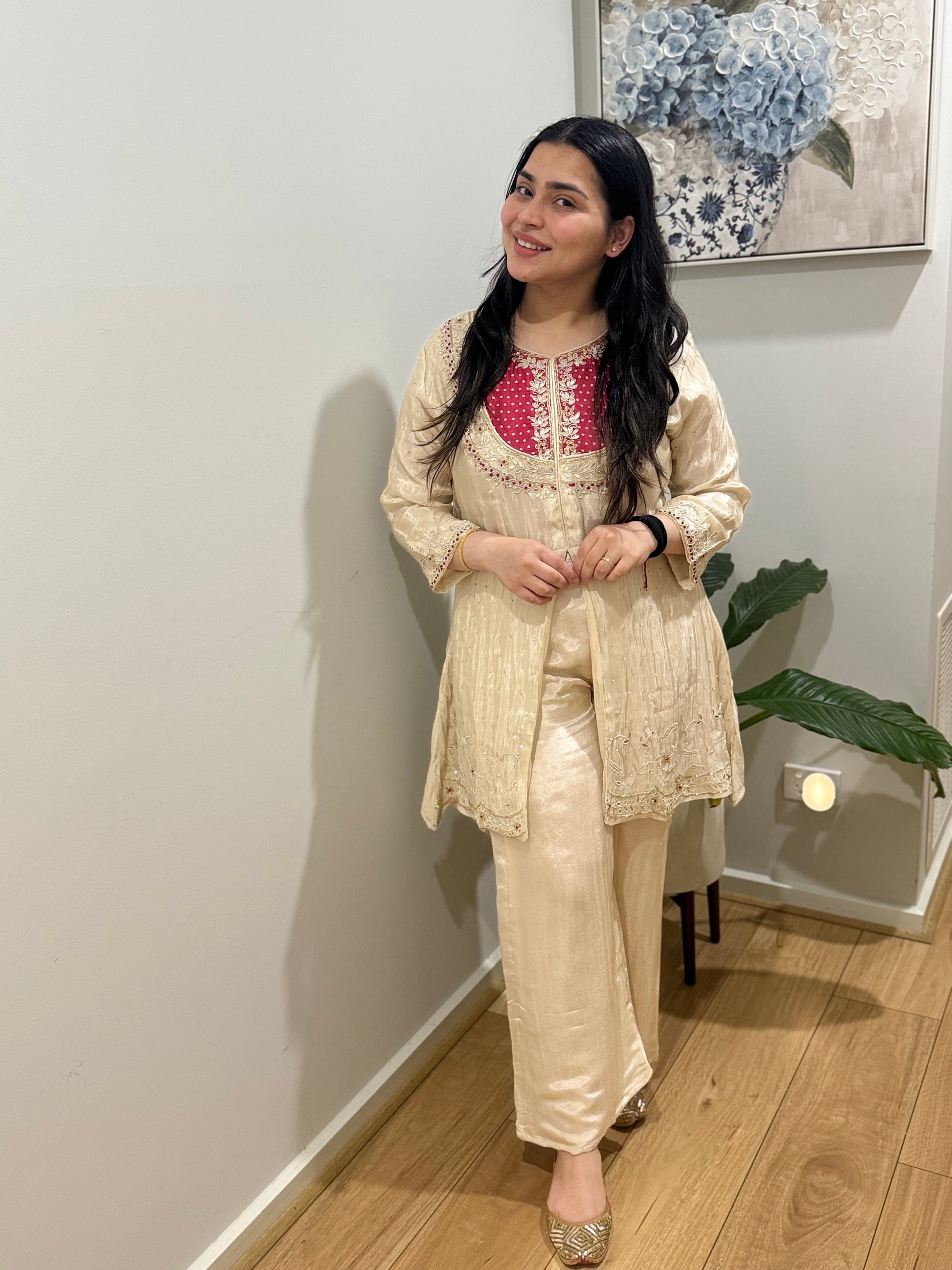 Premium cotton silk embroidered coord set with lining