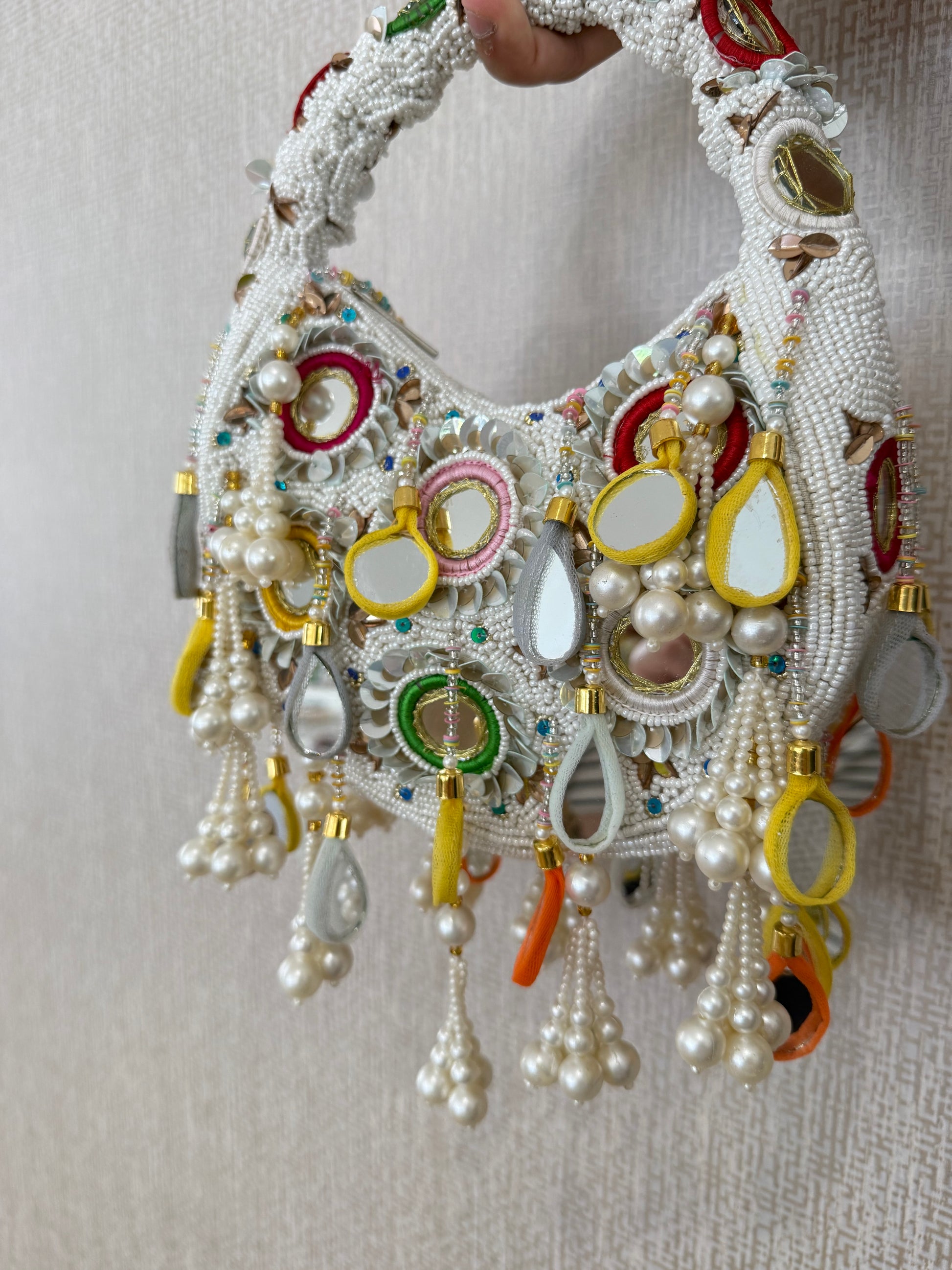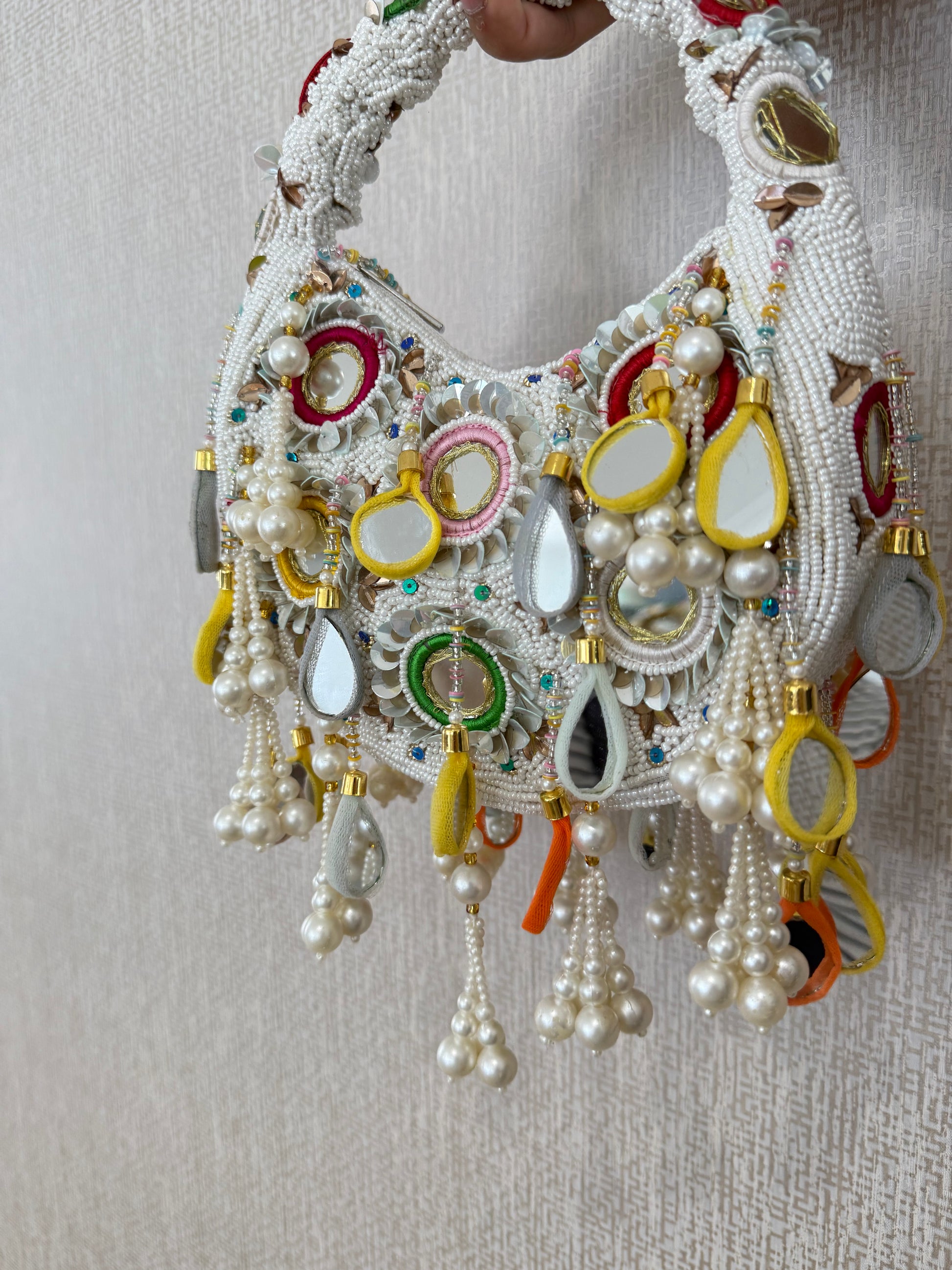 Ivanya adds a touch of elegance to any outfit with its premium quality, mirror work, and tassels. Perfect for occasional use, this versatile accessory not only enhances your look but also serves as a functional addition to your wardrobe. Experience the grace of Ivanya for yourself.