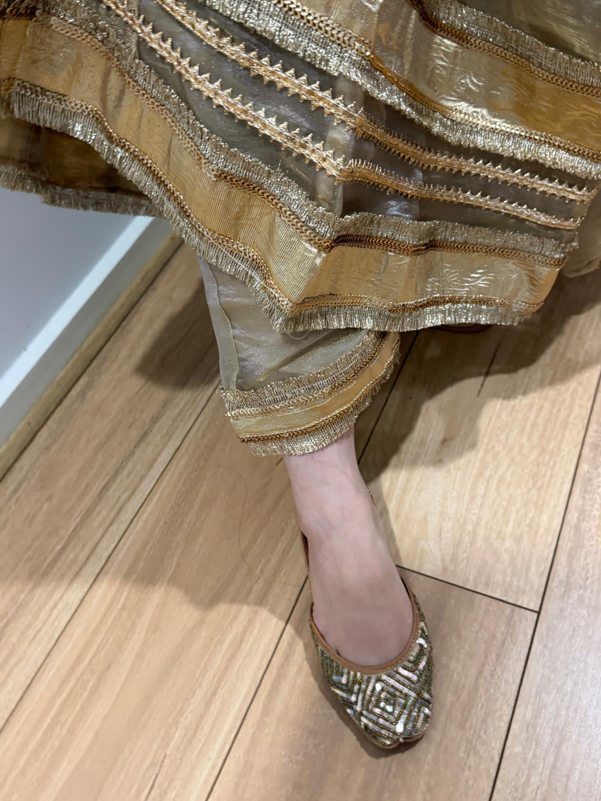 Premium quality tissue shimmer anarkali suit with pants and tissue dupatta