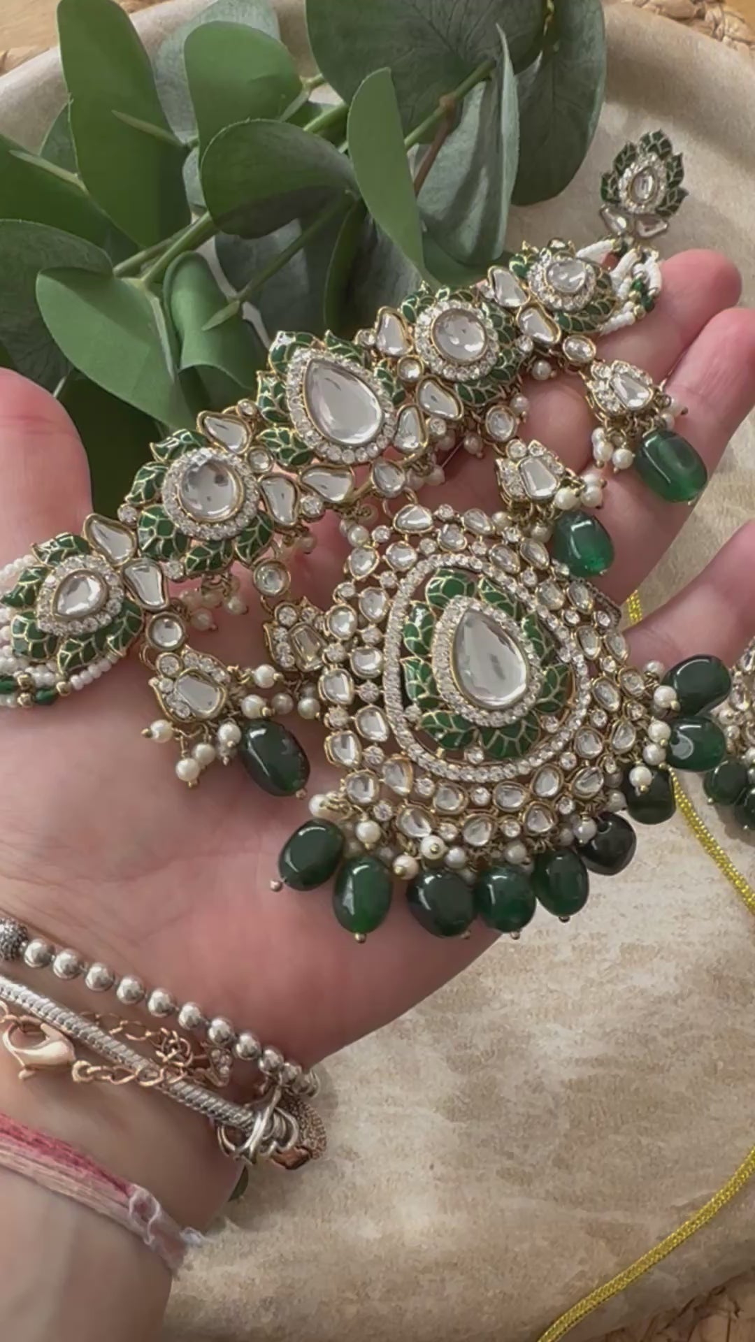 Premium Quality Kundam choker with earrings and tikka